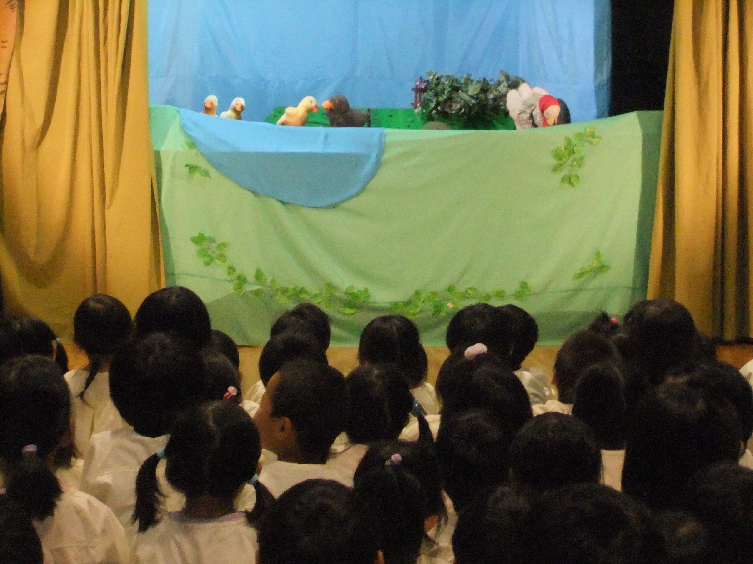 人形劇をみました 2025年10月6日 イベント 今日は劇団すぎのこの人形劇の日です! 「みにくいあひるのこ」と「金のおの銀のおの」の人形劇をホールでみました。 楽しいお話と、面白い人形の動きに大喜びの子どもたちでした。 劇団のすぎのこのみなさんありがとうございました。