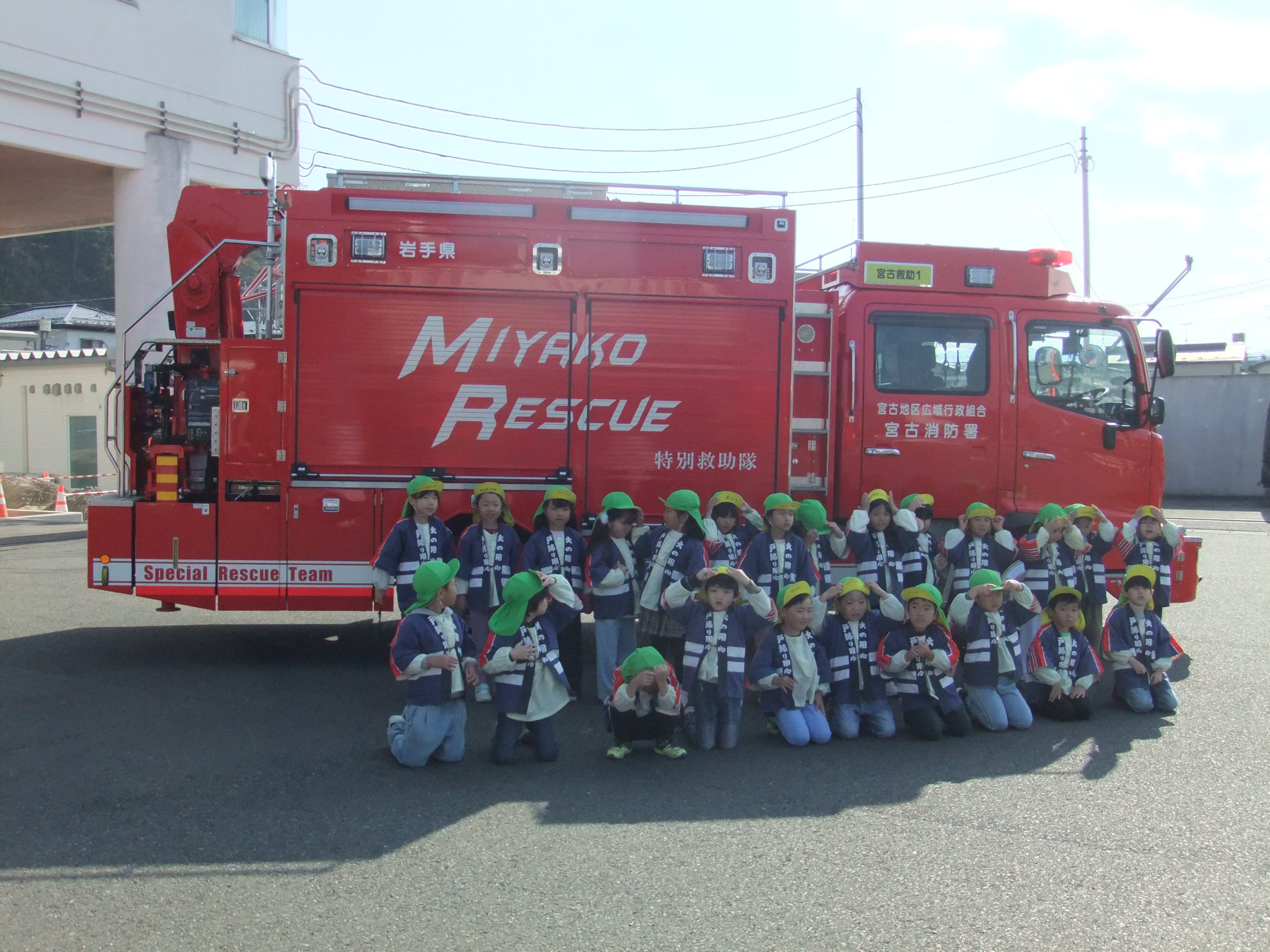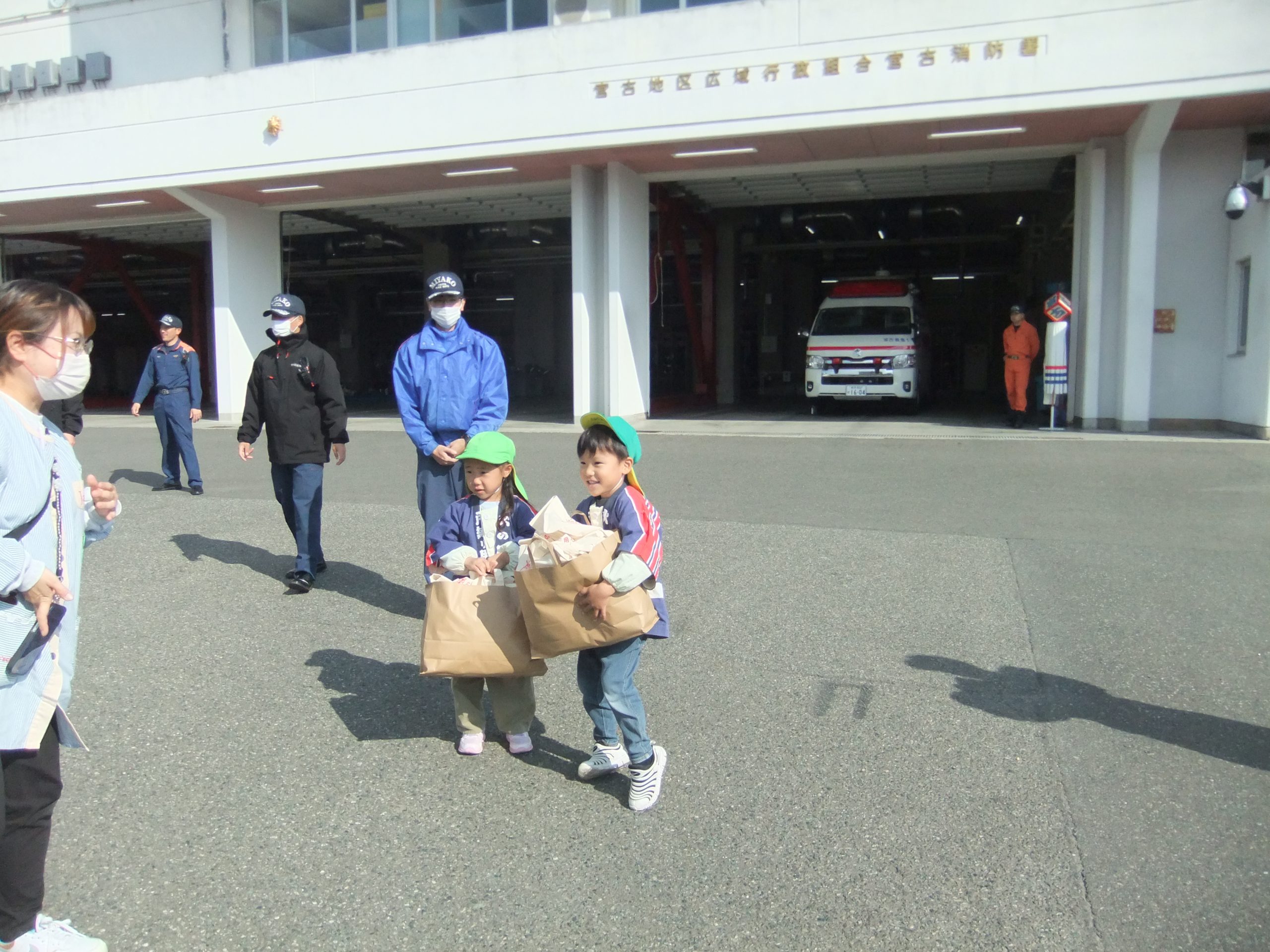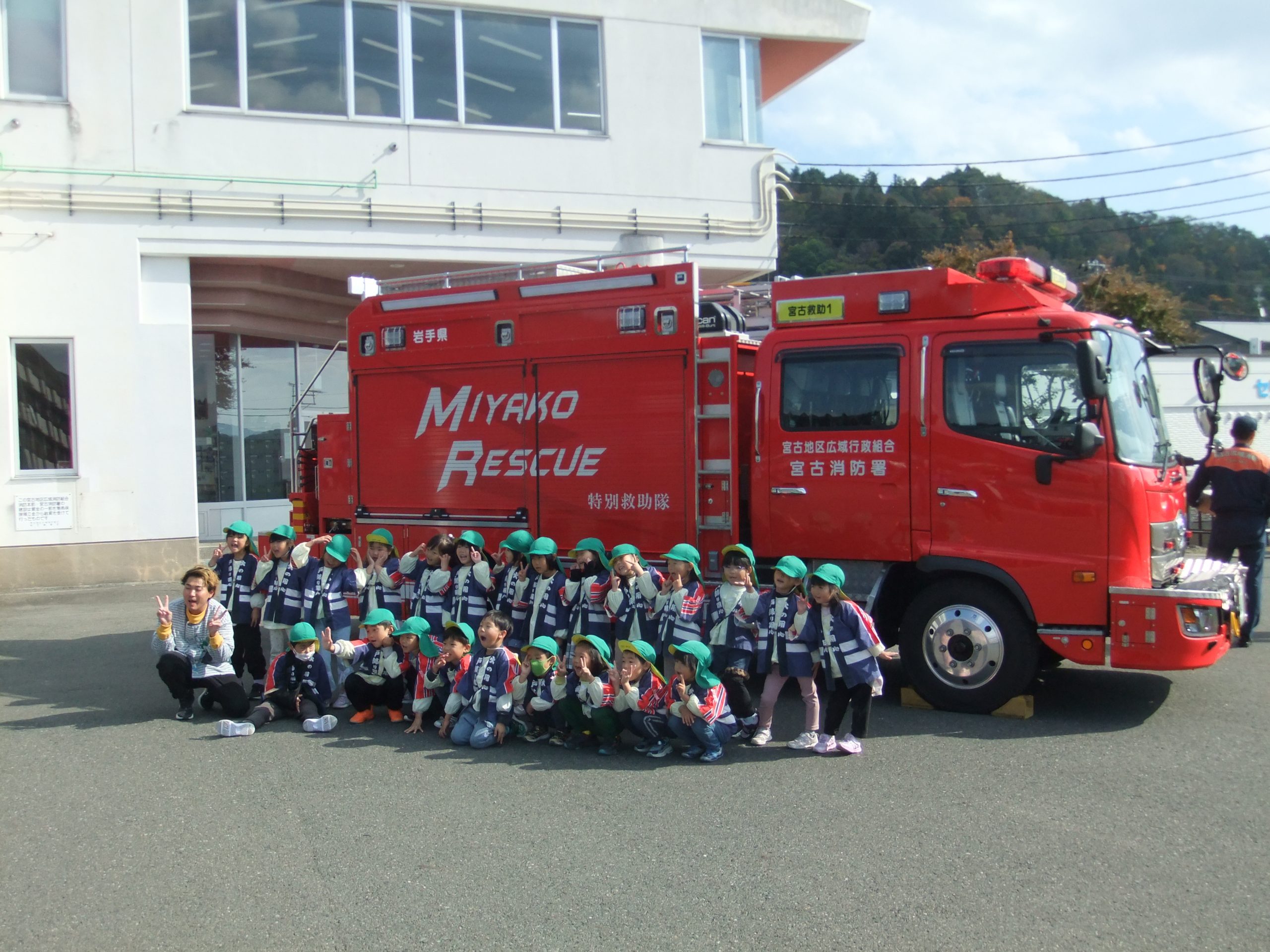 消防体験まつり 2025年10月30日 イベント 年長組の子どもたちが、宮古消防署の消防体験まつりに行ってきました。 いろいろな体験をしてきました。 おみやげもいただきました。 宮古消防署のみなさんありがとうございました。
