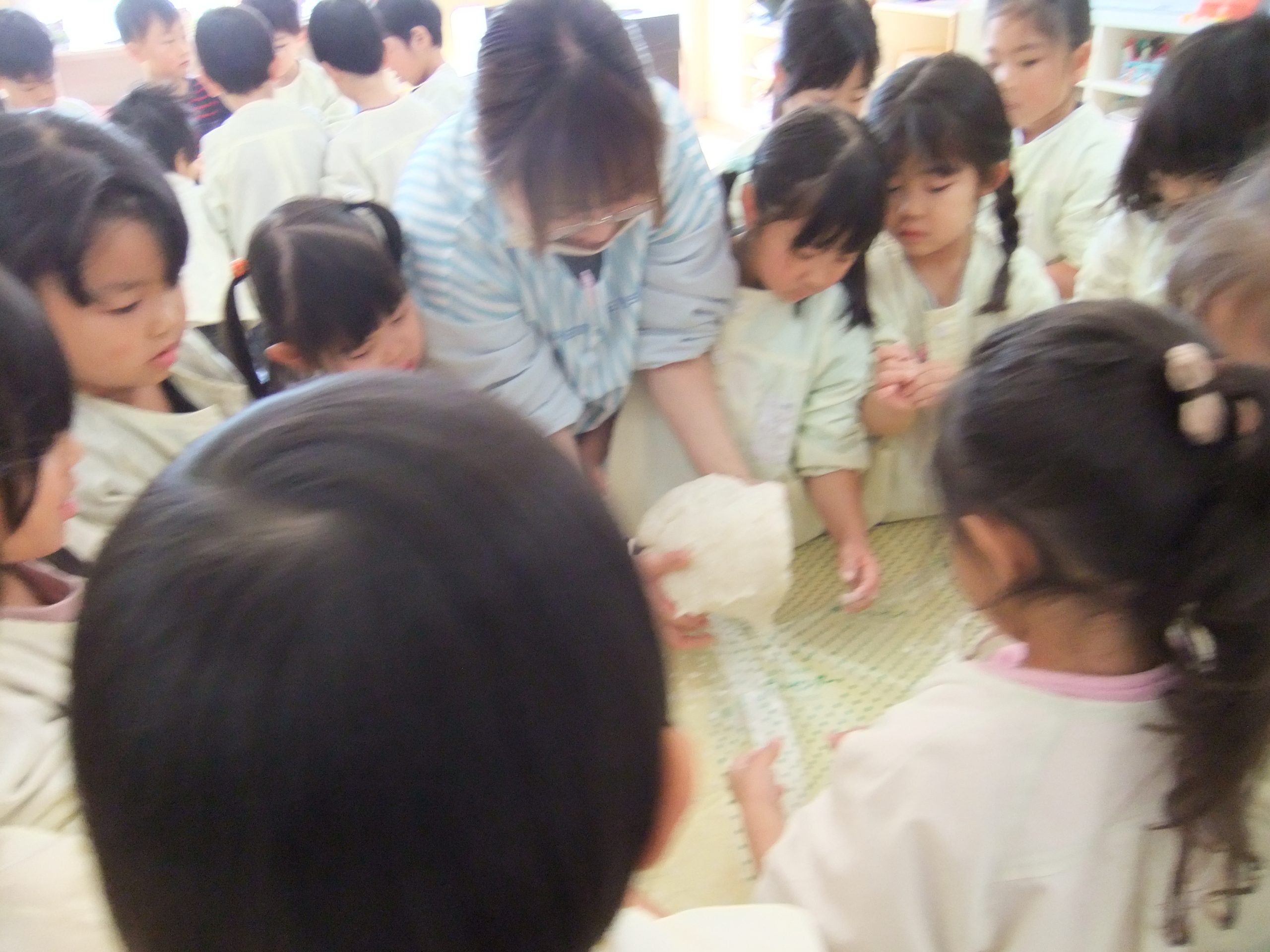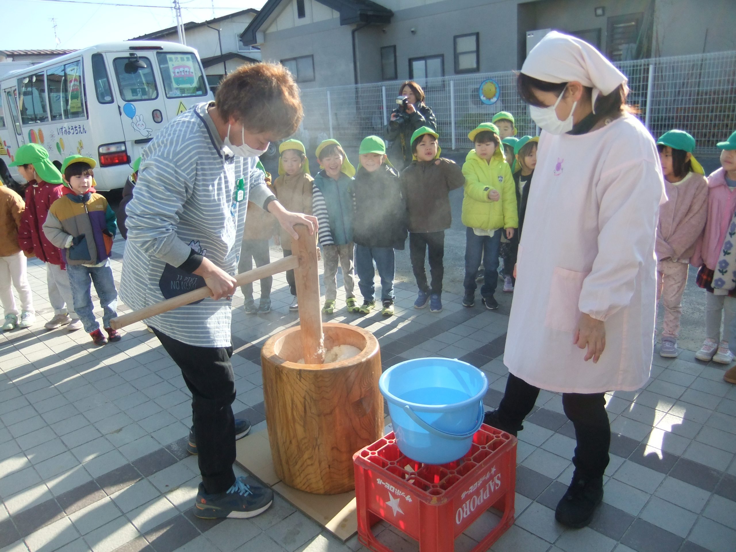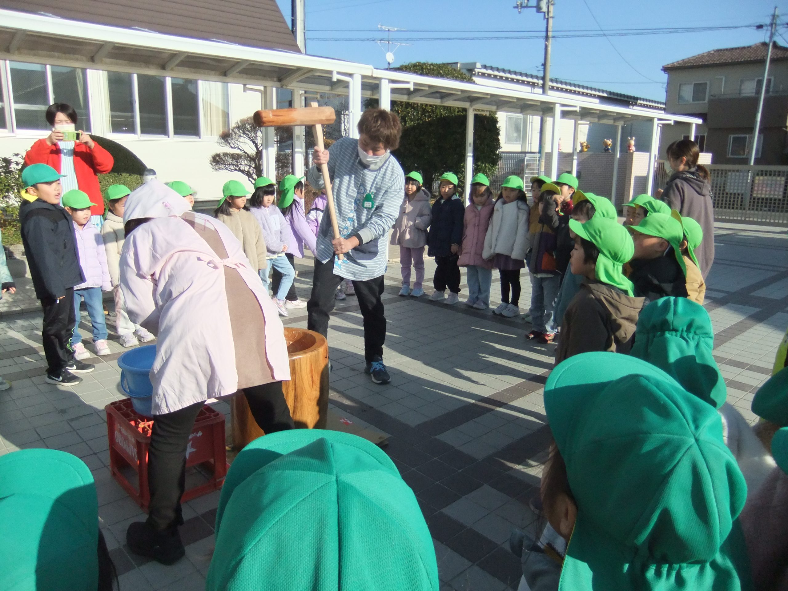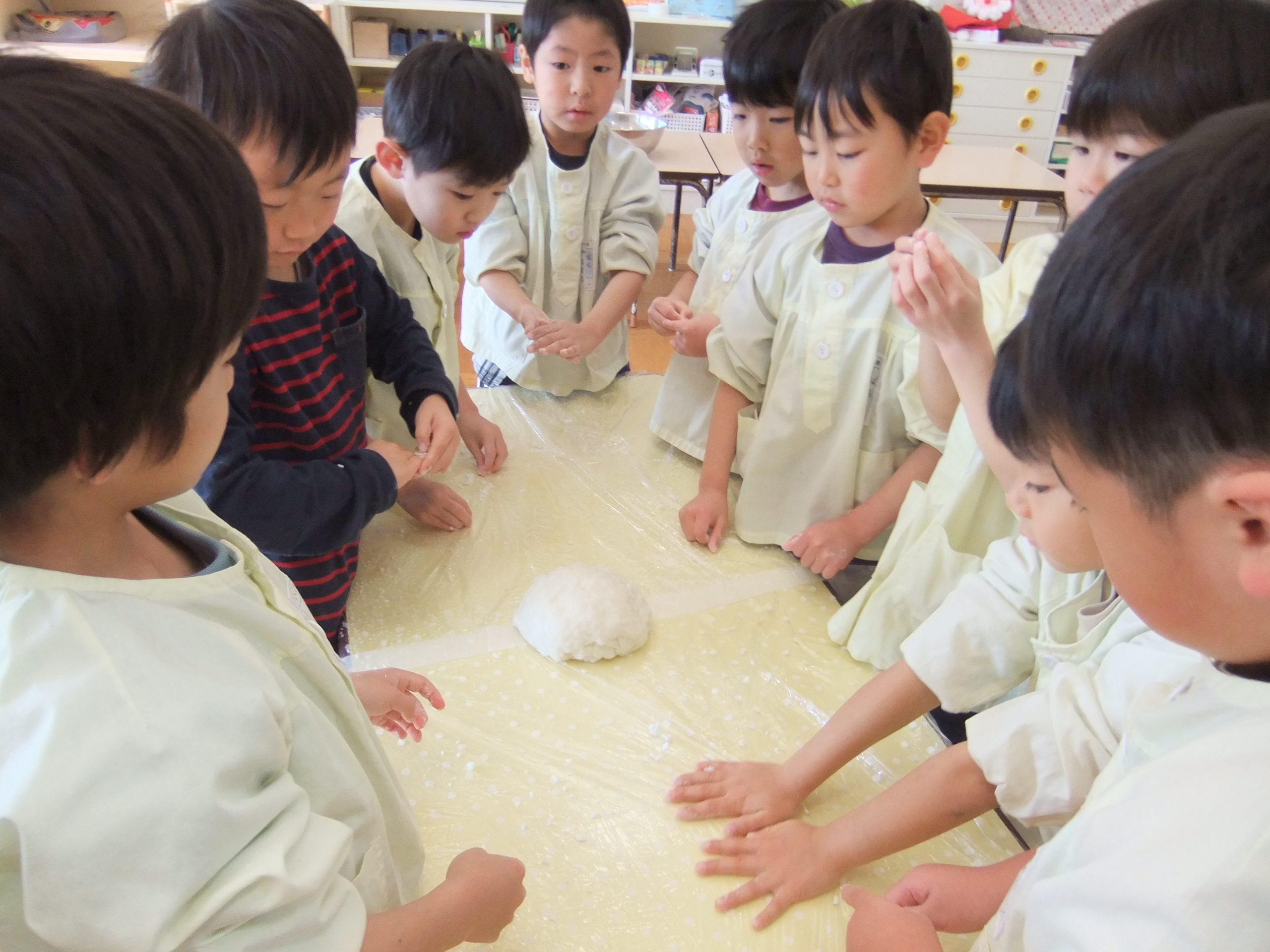 年長組の子ども達はついた餅でお供え餅を作りました。